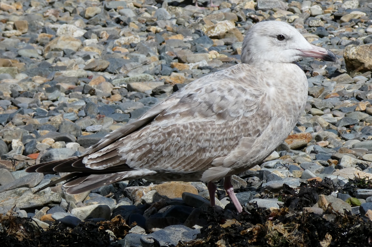 I settled down against the cliffs on the beach at Newlyn where it was quite pleasantly sheltered from the worst of the wind. Various Gulls were loafing about on the exposed sand on the low tide - adult and 1st winter Great Black-backed Gulls, an adult and 3rd summer Lesser Black-backed Gulls and assorted Herring Gulls - and I quickly found the American Herring Gull amongst the 1st winter Herring Gulls which flew over to where I was sitting expecting to be fed.